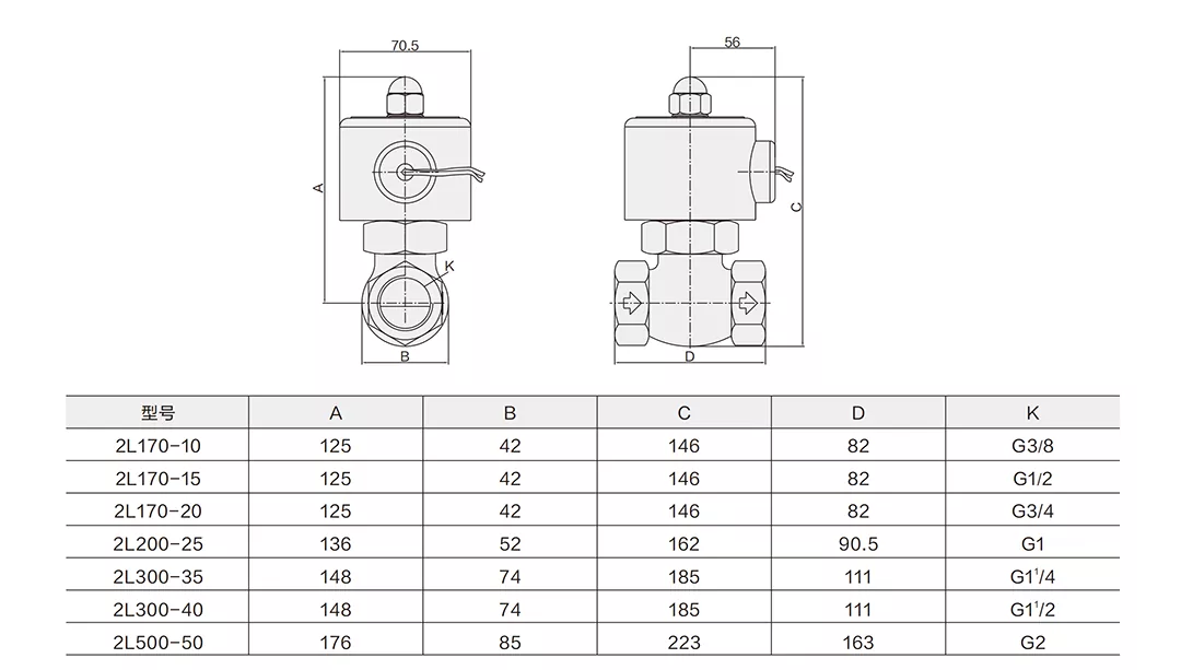 2L 스팀 솔레노이드 밸브 2방향 특징:
