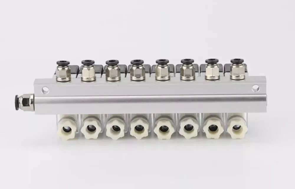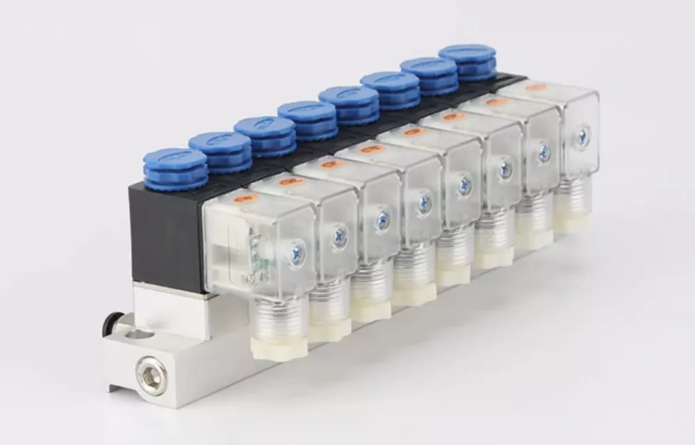 최대 10개의 2V025 솔레노이드 밸브가 매니폴드 밸브를 형성할 수 있습니다.
