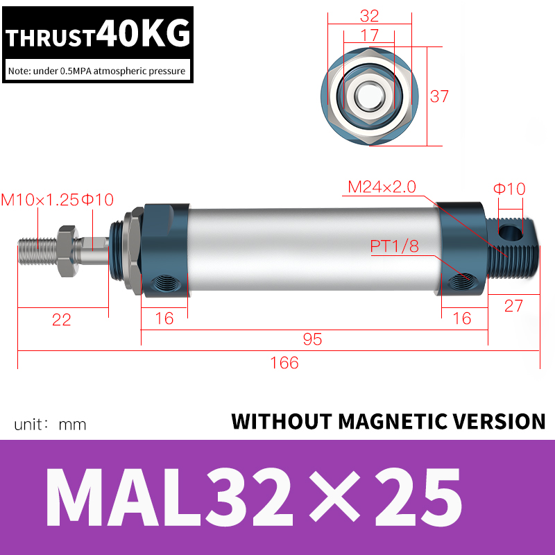 MAL 시리즈 미니 실린더 표준 사양: