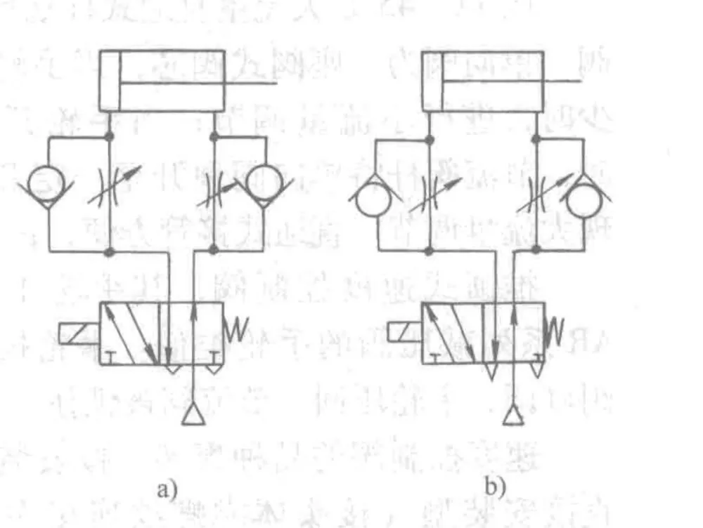 다이어그램은 공압 회로에서 속도 제어 밸브를 연결하는 두 가지 방법을 보여줍니다.