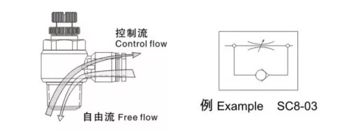 일방향 유량 제어 밸브는 체크 밸브와 스로틀 밸브가 병렬로 구성된 유량 제어 밸브입니다. 일반적으로 실린더의 속도를 제어하는 데 사용되며 속도 컨트롤러라고도 합니다.