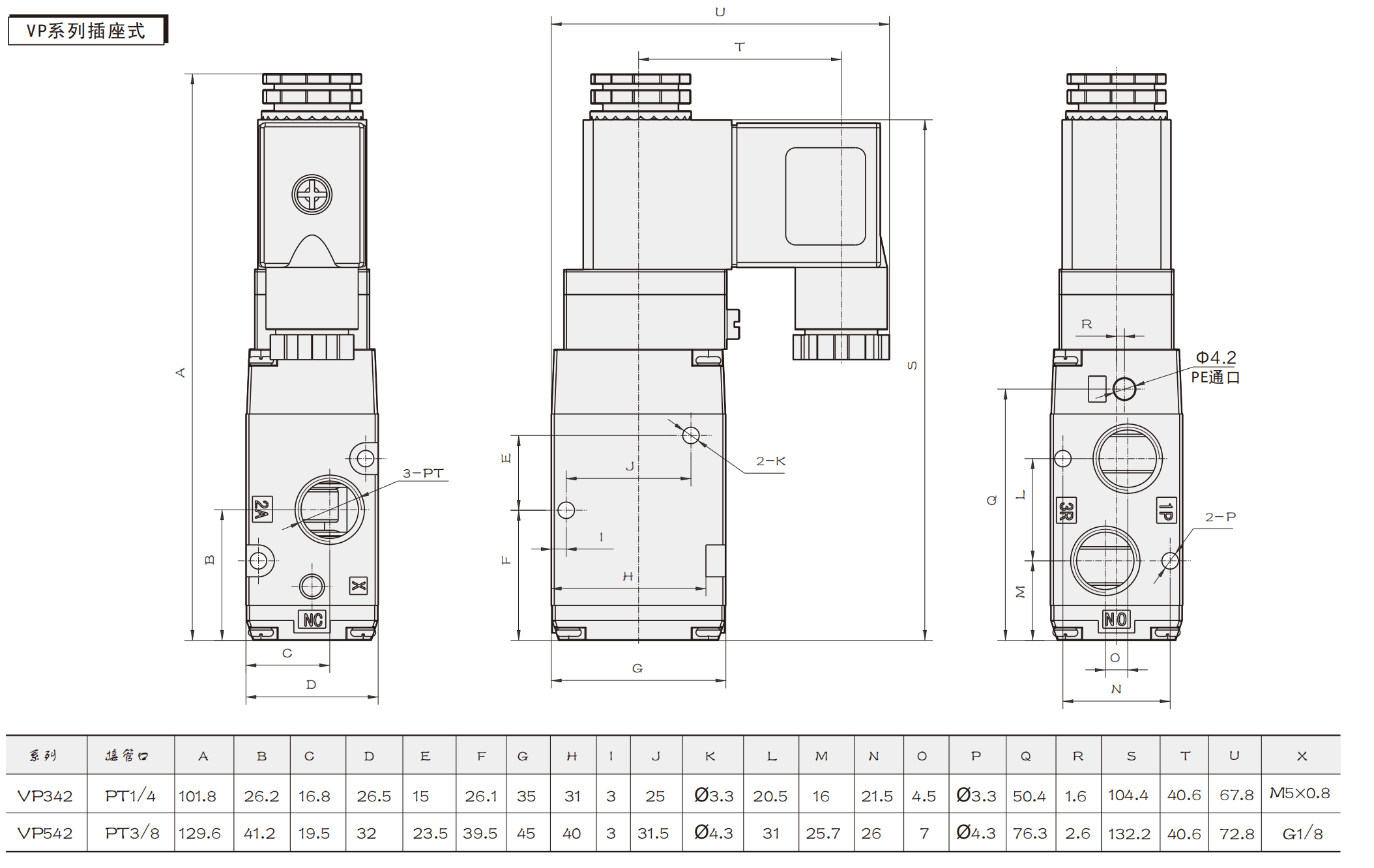 VP 시리즈 솔레노이드 밸브 3방향 CE 인증서일반 매개변수
